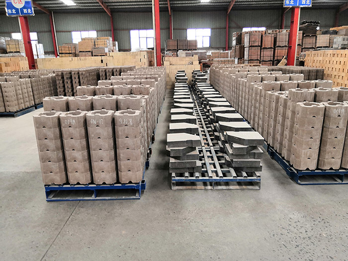 高鋁磚及鎂磚、鎂橄欖石磚、鉻鎂磚和鋯剛玉磚等。也可按格子體高度分段采用不同的磚材,從而改善格子體的使用性能。磚型可以采用標準型磚或特制的異性磚。