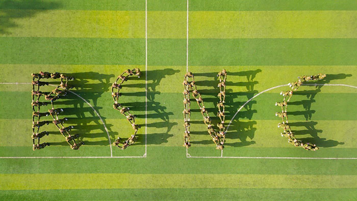 在午后和煦的陽光中,榮盛的小伙伴們肩并肩、心連心,在綠茵操場上圍成了一個(gè)大大的圓環(huán),繪就出屬于榮盛的同心圓,這也正是榮盛大家庭同心同力、圓滿美好的象征。大家還在綠茵草坪上站成了“榮盛耐材“”的英文logo——“RSNC”字樣,為榮盛送上了自己美好的祝福,也為這兩天的拓展訓(xùn)練畫上了wan美的句號。