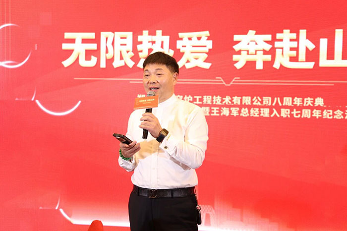 緊接著,集團(tuán)總經(jīng)理王海軍發(fā)表了精彩致辭。王總以真摯的情感,分享了與榮盛風(fēng)雨同舟七年的心路歷程。他感慨,七年時(shí)光,見證了公司的跨越式發(fā)展,也見證了團(tuán)隊(duì)的成長與凝聚。每一項(xiàng)技術(shù)的攻堅(jiān)克難,每一個(gè)項(xiàng)目的交付,都是全體榮盛人并肩作戰(zhàn)、共赴山海的生動(dòng)寫照。王總表示,未來將繼續(xù)與全體家人一道,以更加堅(jiān)定的信念與飽滿的熱情,迎接挑戰(zhàn),再創(chuàng)輝煌。