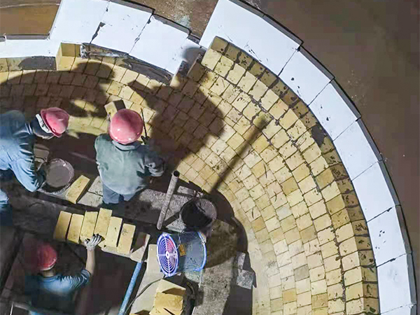 鄭州榮盛為客戶電爐更換鋁碳磚施工現(xiàn)場