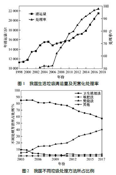 城市垃圾的無(wú)害化、減容化已成為政府和公眾非常關(guān)心的問(wèn)題。隨著我國(guó)經(jīng)濟(jì)的迅速發(fā)展和人口不斷向城市集中,城市化進(jìn)程加快且數(shù)量和規(guī)模不斷擴(kuò)大,城市生活垃圾總量持續(xù)增多。近十幾年來(lái),我國(guó)城市垃圾無(wú)害化處理從無(wú)到有,無(wú)害化處理率也在逐年增長(zhǎng)(見(jiàn)圖1)。