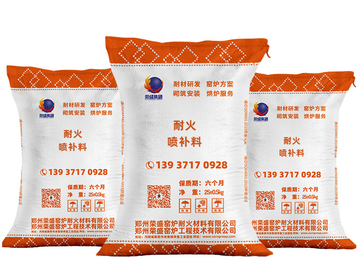 主要解決大型高爐鐵溝使用過程的局部快速熱態(tài)修補,溫度為100—1450℃,有人研究用磷酸二氫鋁結(jié)合的Al2O3—SiC—C質(zhì)噴補料具有良好的性能。同時選擇中擋鎂砂為固化劑(1—2%),與磷酸二氫鋁在噴槍口噴出混合噴到修補面上不流淌,可快速固化燒結(jié)。當噴補層厚度180—250mm,噴完10min即可出鐵,連續(xù)使用12d,過鐵總量4.8萬t,噴補層還有少量殘襯。一般用水泥結(jié)合的同類噴涂料使用5d左右,過鐵量2萬t左右。熱噴補有濕式和半干法兩種。
